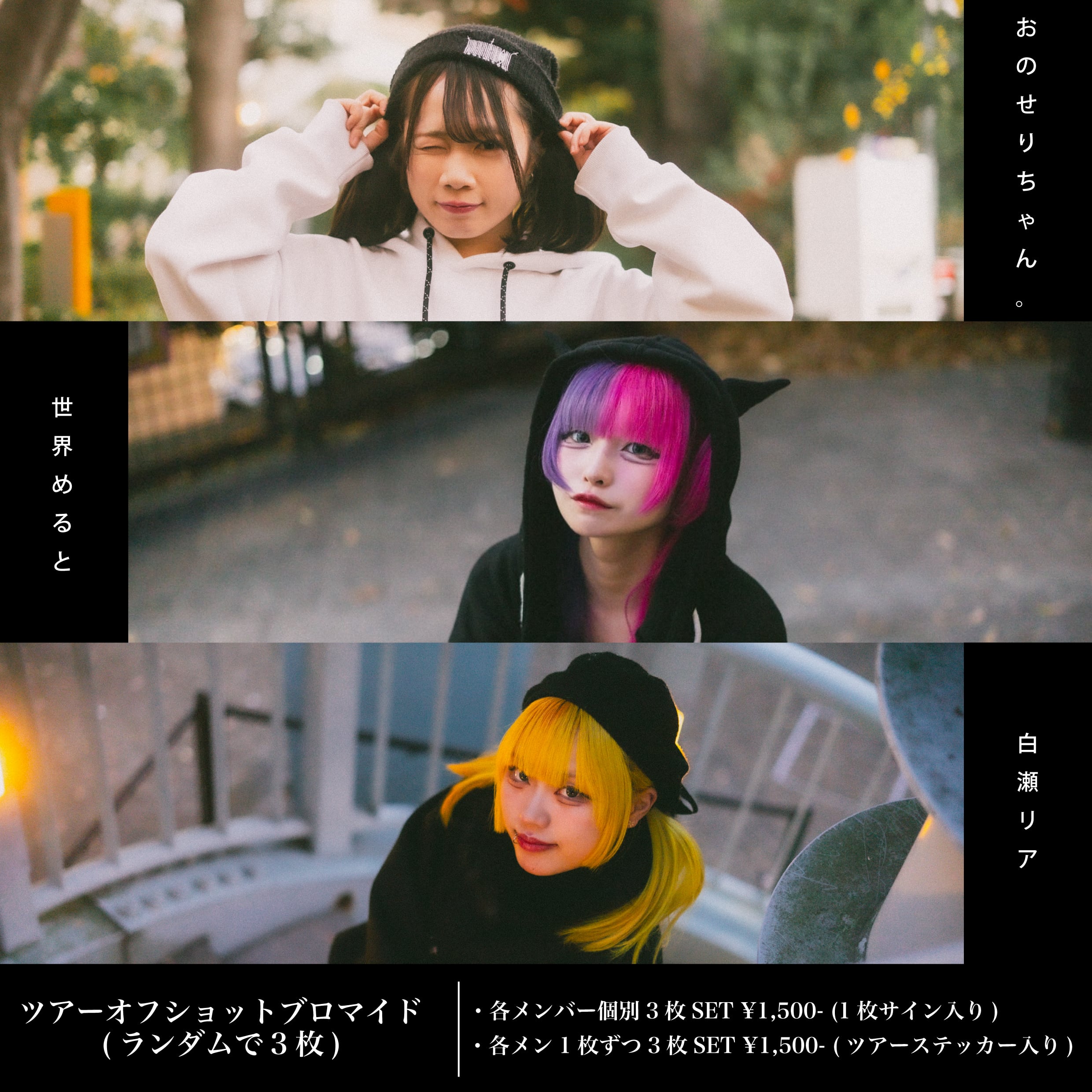 ・各メンバー個別ランダム3枚 SET ¥1,500-(1枚サイン入り)